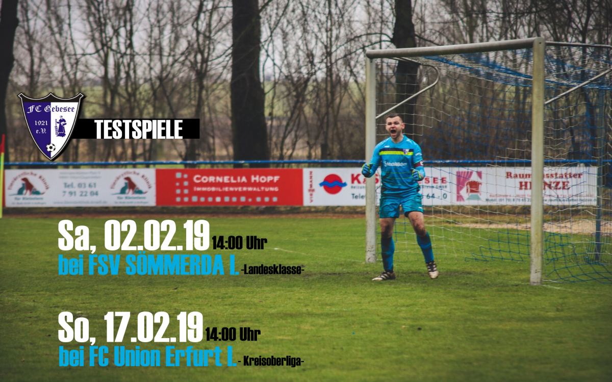 Am Samstag, den 02.02.19 startet unsere erste Mannschaft in der Vorbereitungsphase mit einem Testspiel gegen FSV Sömmerda aus der Landesklasse. Gespielt wird auswärts in Sömmerda. Anstoß ist hier um 14:00 Uhr!