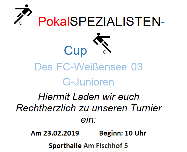 Der FC Weißensee 03 lädt unsere Kleinsten am Samstag, den 23.02.2019 zum Hallenturnier in die Sporthalle Am Fischhof 5 in Weißensee ein.